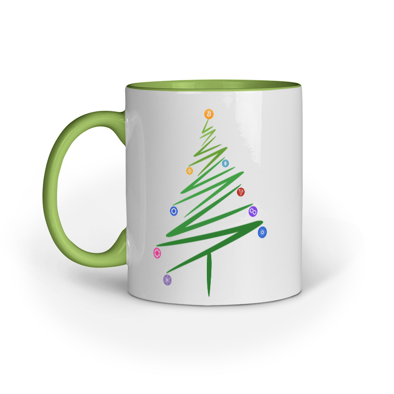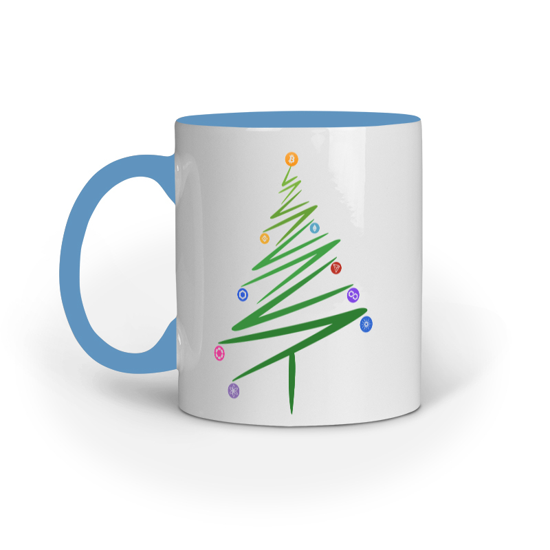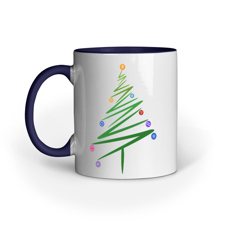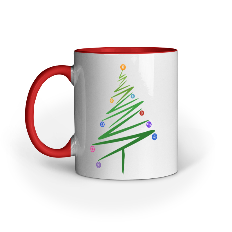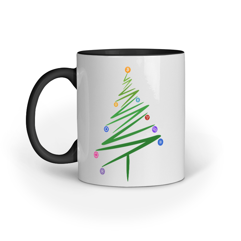 Christmas Tree with Crypto Coins X-mas ceramic printed crypto coffee mug